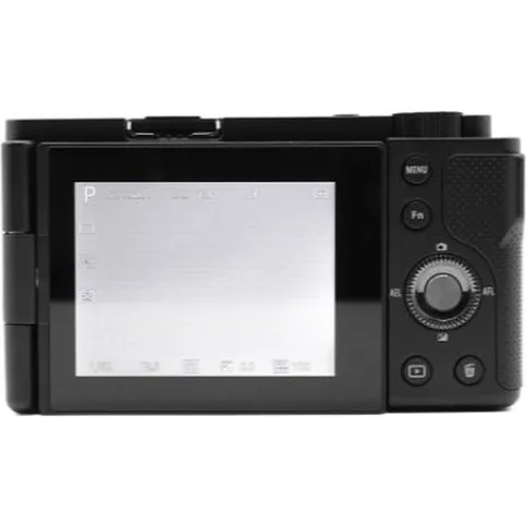 Dispone di un display touch ribaltabile da 2,8 pollici, autofocus con stabilizzazione dell’immagine, zoom digitale 4x, gamma ISO da 100 a 3200, flash rimovibile, connettività Wi-Fi tramite app mobile e funzioni automatiche come modalità selfie, rilevamento volti e timer.