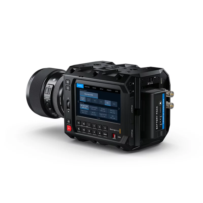 Permette la registrazione in Blackmagic RAW a 12 bit con generazione simultanea di proxy H.264 su schede CFexpress Tipo B, dispone di doppio ISO nativo 400 e 3200, display touchscreen HDR da 4 pollici e 1500 nits, connettività estesa che include Ethernet, USB-C, SDI e Bluetooth, oltre a un corpo modulare adatto a rig, gimbal e droni.